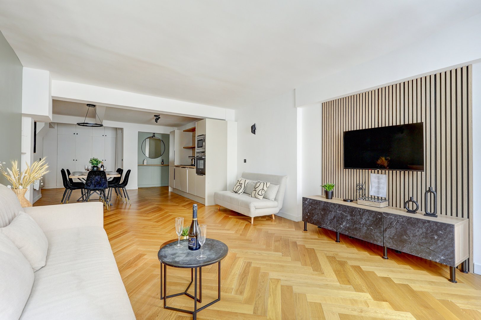 Welcome to TheBlueStay! Discover this elegant 110m² apartment in the heart of Paris. Sleeping up to 8 people, this modern, fully-equipped accommodation is perfect for a stay with family or friends.