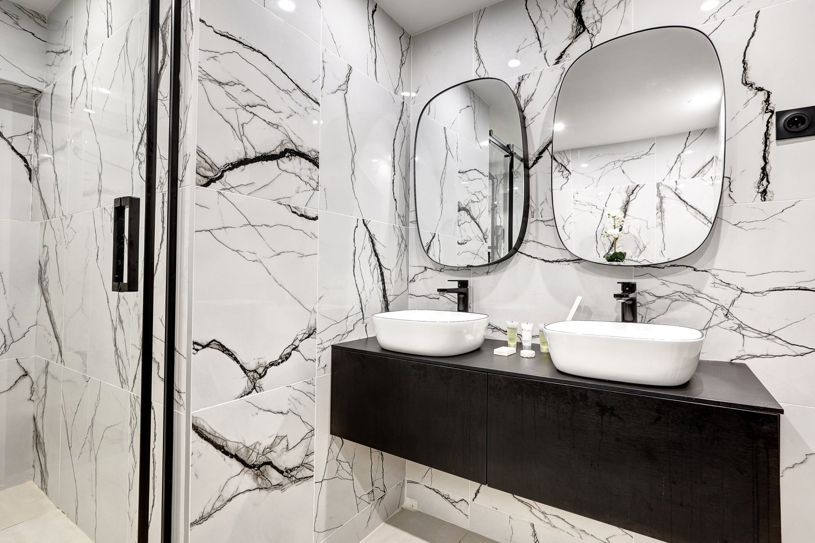 Enjoy a pleasant stay in this apartment designed for your comfort : Living room: A spacious, welcoming living room with double sofa bed, TV and dining table. Ideal for relaxing after a day of exploring. Kitchen: Fully-equipped open kitchen with hob, microwave, oven, toaster, dishwasher, Nespresso machine and all the utensils you need to cook delicious meals. Master bedroom: Cosy room with double bed, dressing room and TV. Bedroom 2: Cosy, elegant room with double bed and small wardrobe. Bedroom 3: Charming bedroom with double bed, small wardrobe and private bathroom. Bathrooms: Two modern bathrooms with shower gel and shampoo. Toilet: Two WCs, one integrated into one of the bathrooms and the other separate, with its own washbasin, for added convenience. Additional amenities: Washing machine, dishwasher, iron, large-screen TV, Wi-Fi included. Bed linen (sheets and blankets) and a set of towels per person are provided to make you feel at home.